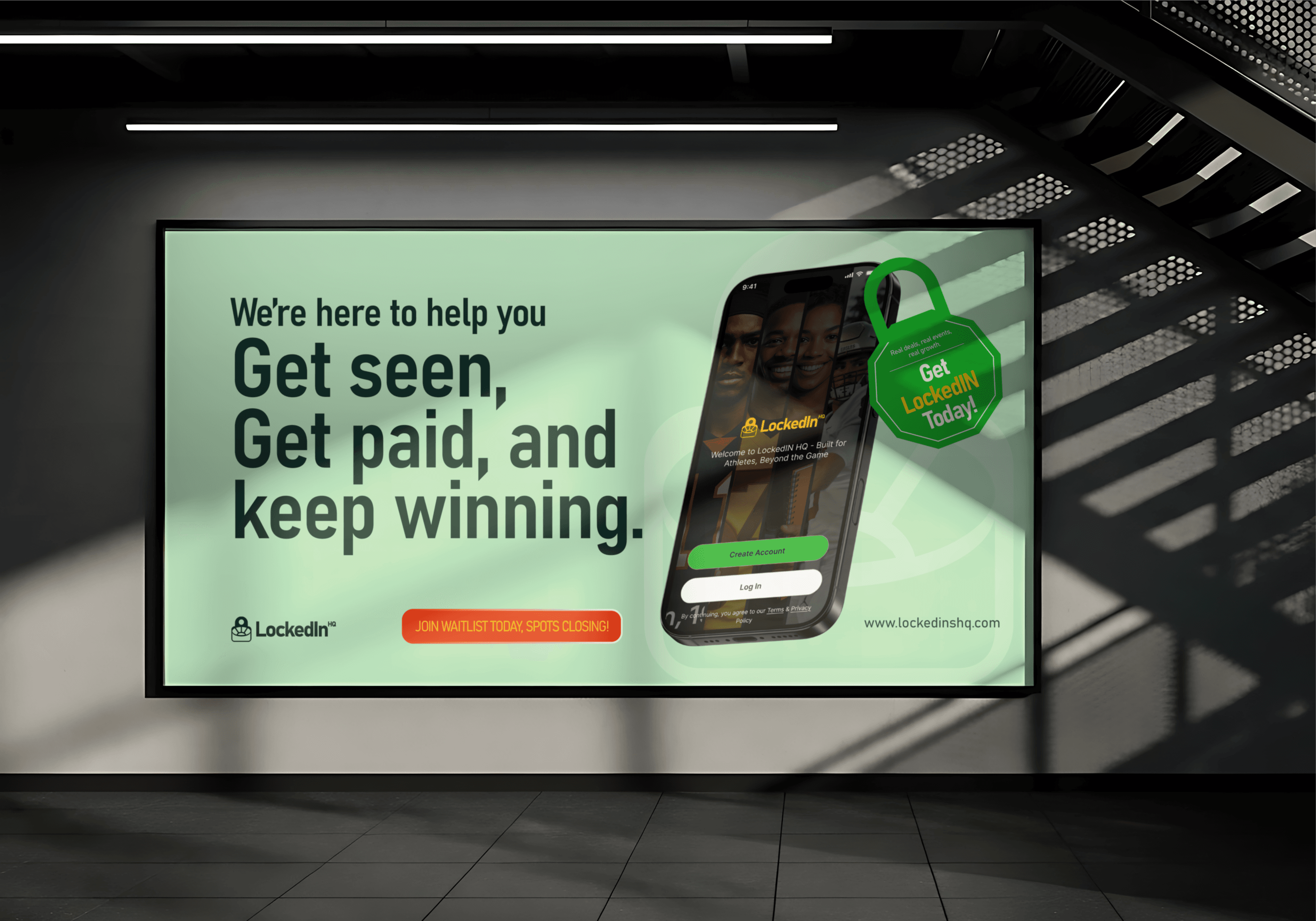The objective was to create a bold, athlete-first identity that positions LockedIn HQ as the digital hub for the modern athlete, a platform where focus, discipline, and opportunity meet.